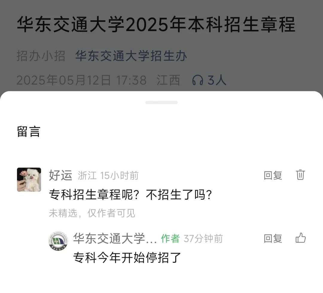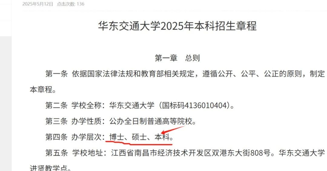 与2024年相比,最大的变化是:办学层次。2025年已经取消了高职(专科)办学,也就是说,华东交通大学2025年不再招收大专的学生了。