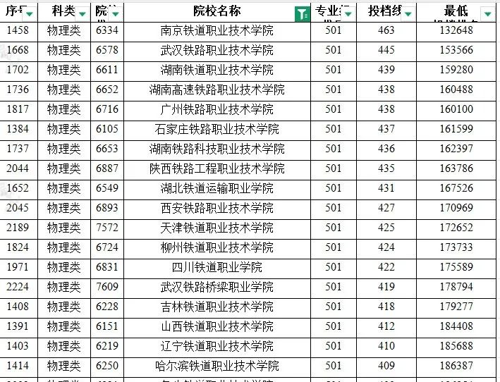 全国铁路类大专在江西招生,2024年物理类最低投档线及位次
