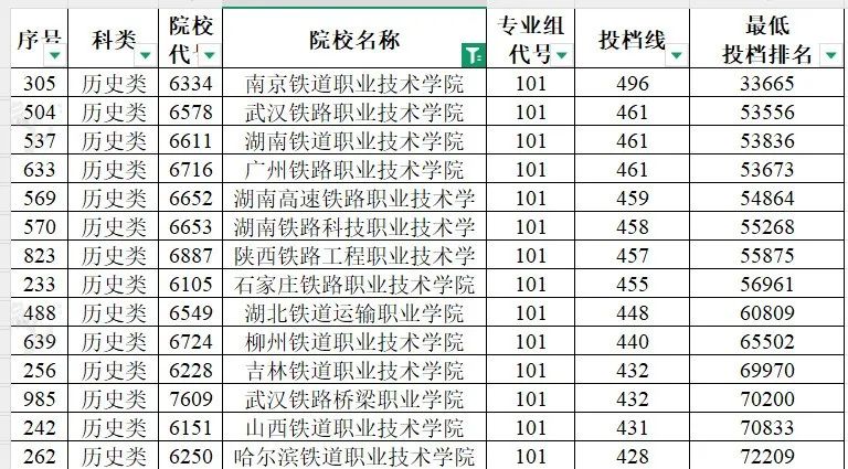 全国铁路类大专在江西招生,2024年历史类最低投档线及位次
